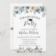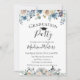 Chic watercolor floral arrangement in dusty blue and neutral graduation party invitation. Personalise text font style, colour, and size.