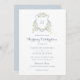 Dusty Blue Floral Greenery Monogram Crest Wedding Invitation