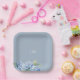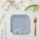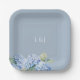 Dusty Blue Floral Hydrangea Initials Wedding Paper Plate