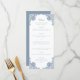 Elegant dusty blue wedding menu featuring dusty blue floral lace. Matching items available. Easily personalize this dusty blue rustic menu with your wedding details.