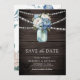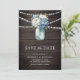 Dusty Blue Floral Mason Jar Wood Photo Wedding Save The Date