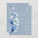 This elegant dusty blue transparent floral baptism christening invitation postcard can be personalised with your information in chic typography with your monogram on the reverse. Designed by Thisisnotme©