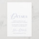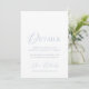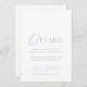 Dusty blue wedding details card with a refined watercolor monogram and timeless serif fonts. Coordinates beautifully with any modern or classic wedding theme.