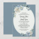 Dusty Blue Floral Oval Frame Wedding Invitation