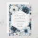 A lush arrangement of deep blue and soft white blooms creates a romantic, artistic backdrop. Delicate eucalyptus foliage weaves through the rich floral tapestry, evoking a sophisticated, natural elegance for your special day.