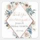 Watercolor floral arrangement in chic dusty blue and neutral with rose gold diamond shape frame personalised stickers. Customise text, font style, colour and size.