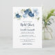 Customise this bridal shower budget invitation card by clicking the "Personalise" button above. The card features a modern elegant chic dusty blue flowers with white, light blue, and olive green bloom. TIP: Great for surprise parties, baby showers, wedding reception, and retirement parties.