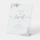 Dusty blue floral script rustic Love is Sweet Pedestal Sign