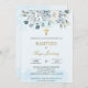 Dusty blue-floral baptism invitation