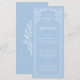 Delicate white blossoms intertwine to create a beautiful floral frame, embracing the timeless elegance of love. This exquisite wedding menu captures the essence of modern aesthetics and classic romance with its harmonious blend of delicate blooms and elegant typography. Against a captivating backdrop of solid dusty blue, this menu sets the stage for a truly enchanting celebration of love.