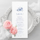 Add a touch of timeless elegance to your wedding table with this Dusty Blue Floral Menu Card. Featuring soft watercolor blooms in serene blue tones and classic serif typography, this menu perfectly complements romantic and refined wedding themes. Ideal for displaying your delicious offerings and elevating your table setting with a graceful detail.