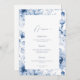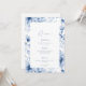 Add a touch of timeless elegance to your wedding table with this Dusty Blue Floral Menu Card. Featuring soft watercolor blooms in serene blue tones and classic serif typography, this menu perfectly complements romantic and refined wedding themes. Ideal for displaying your delicious offerings and elevating your table setting with a graceful detail.