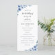 watercolor dusty blue floral with elegant text. You can personalise the text and colours on this wedding program template.