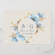 Delicate blue watercolors bring soft peonies and golden accents to your rsvp. Monograms, names and date on reverse in brown lettering. All the text is customisable, as well as templated for personalisation.