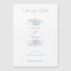 This romantic and classic design features a lush border of elegant line drawn roses, mixed flowers, lily-of-the valley, foliage and vines in a timeless dusty blue color. Also included are editable text fields and custom calligraphy text.