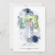Dusty and navy blue flowers gold frame wedding thank you photo card