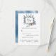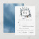 Captivating RSVP card with the ability to add or remove entree choices. Exquisite floral detail on the top with foliage in blue, sage, grey and caramel tones. Back in dusty blue. Card's back in dusty blue watercolor wash texture. Also available in Navy Blue. Part of our "Rustic Blue Mountains wedding and events collection".
