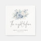 Dusty Blue Florals Night Before Rehearsal Dinner. Elegant flowers in light blue and white are at the top. The Night Before is in a handwriting style set script. Easily personalise your names and date.
