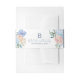 This dusty blue florals monogram wedding invitation belly band is perfect for a spring or summer wedding. The dainty design features light blue peonies arranged with peach and cream flowers in a gorgeous bouquet. Personalise the paper belly bands with the last initial of the bride and groom.