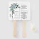 Dusty blue watercolor flowers, arch and monogram spring weddinghand fan program. This lovely wedding design features an arch frame with dusty blue cactus flowers and leaves on the left corner and your monogram. The names are in script typography.