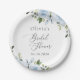 Dusty Blue Flowers, Greenery, Boho, Bridal Shower Paper Plate