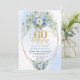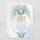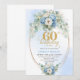 Dusty blue flowers white peony gold 60th birthday invitation