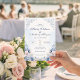 This elegant wedding design features soft dusty blue watercolor flowers, delicate French garden details, and romantic ornamental scrollwork. The layout feels refined and timeless, making it a beautiful choice for classic, formal, and romantic wedding celebrations. Pale blue florals with subtle blush accents create a graceful and airy look that works especially well for spring and summer weddings. The coordinated front and back design also pairs beautifully with wedding website and RSVP QR code details.