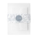 Elegant dusty blue French inspired flower pattern with bride and groom monogram wedding invitation belly bands.