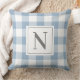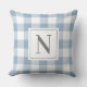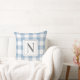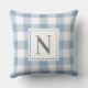 Dusty Blue Gingham Check Monogram Initial Cushion