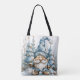 Dusty Blue Gnome and Christmas Trees Tote Bag