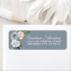 Dusty Blue Gold Blush Pink Peach Floral Wedding Address Labels - design features a watercolor dusty blue background with a gold frame trimmed in eucalyptus and greenery with floral elements in grey/white, dusty blue and blush pink/peach. View the matching collection on this page to find matching products.