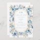 Dusty Blue Gold Floral Bloom all in one Wedding Invitation