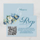Dusty Blue Gold Glitter Floral QR Code RSVP Card