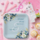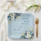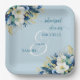 Dusty Blue Gold Glitter Floral Rehearsal Dinner Paper Plate