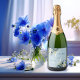 Dusty Blue Gold Glitter Floral Wedding Sparkling Wine Label