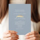 Romantic dusty blue wedding invitation featuring a pair of golden lovebirds perched on a leafy branch. A soft pastel background paired with elegant serif and script fonts gives this design a timeless and minimalist look. Perfect for spring, summer, or fall weddings with a nature-inspired, romantic, or blue-and-gold theme. Personalise with your names, wedding date, and venue details. Pairs beautifully with matching RSVP cards and save-the-dates in the same suite.
