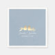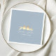 Elegant dusty blue wedding napkins with a romantic gold foil look illustration of two lovebirds perched on delicate branches. Personalised with the couple’s names and wedding date in modern calligraphy. A soft, charming accent for spring, summer, or fall wedding receptions with a blue, gold, or romantic nature-inspired theme. Matches the full Dusty Blue & Gold Lovebirds invitation suite.