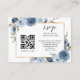 Dusty Blue Gold Pastel Floral QR Code Wedding RSVP Enclosure Card