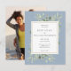 Dusty Blue Greenery Leaves Wedding Photo Invitation Postcard