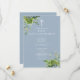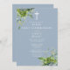 This elegant eucalyptus greenery botanical dusty blue first holy communion save the date invitation can be personalised with your information in chic typography with monogram initials on the reverse. Designed by Thisisnotme©