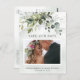 Dusty Blue Greenery Photo Wedding Save the Date Postcard
