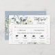 This wedding event response RSVP enclosure postcard with 4 meal choice options features an elegant modern minimalist style with watercolor greenery foliage leaves arrangements and beautiful calligraphy and clean and serif typography fonts on a dusty blue background. The simplicity and clean design of this wedding RSVP response enclosure card works well with all wedding themes and definitely a great addition to your wedding. Just customise the couple's names, date, 4 meal choice options, and other info in a few easy steps and personalise it to give it a nice personal touch.