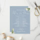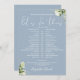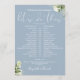 This stylish dusty blue greenery wedding schedule timeline can be personalised with your wedding details in chic typography. Designed by Thisisnotme©