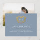 Gold heart monogram blue grey wedding photo save the date card. Edit this save the date card with your own names and wedding date on one side and your own photo on the reverse. Other matching items and colour options are available. Original design by Sarah Trett for www.mylittleedenweddings.com