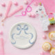 Celebrate in style with these vintage inspired bridal shower paper plates featuring a dusty blue hand drawn oval frame with a bow.