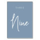 Dusty Blue Hand Scripted Table NINE Number