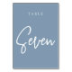 Dusty Blue Hand Scripted Table SEVEN Number