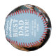 Dusty Blue Happy Birthday Best Dad Photo Collage Baseball. The text is a trendy white typography on dusty blue background. Add 2 photos and names. You can change any text on the baseball or erase it. Great gift and a sweet keepsake for a dad who loves baseball and sport.