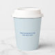 This custom blue & heart paper cup features a simple logo and text area with cute heart. Add your logo and customise the text with your information. You can use this personalised cup at your business place, shops, company event or, etc.