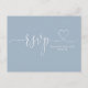 An elegant heart script on a dusty blue background RSVP card. The reverse features your details and a fun guest song request. Designed by Thisisnotme©